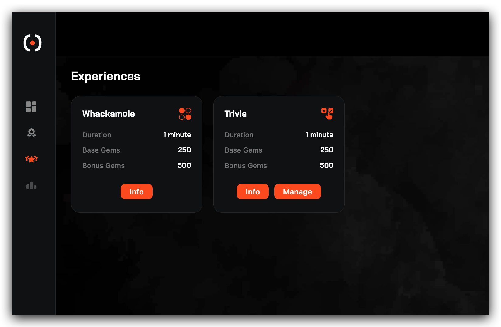 You can find different experiences that we have curated for creators to host in our "Experiences" tab from the creator dashboard